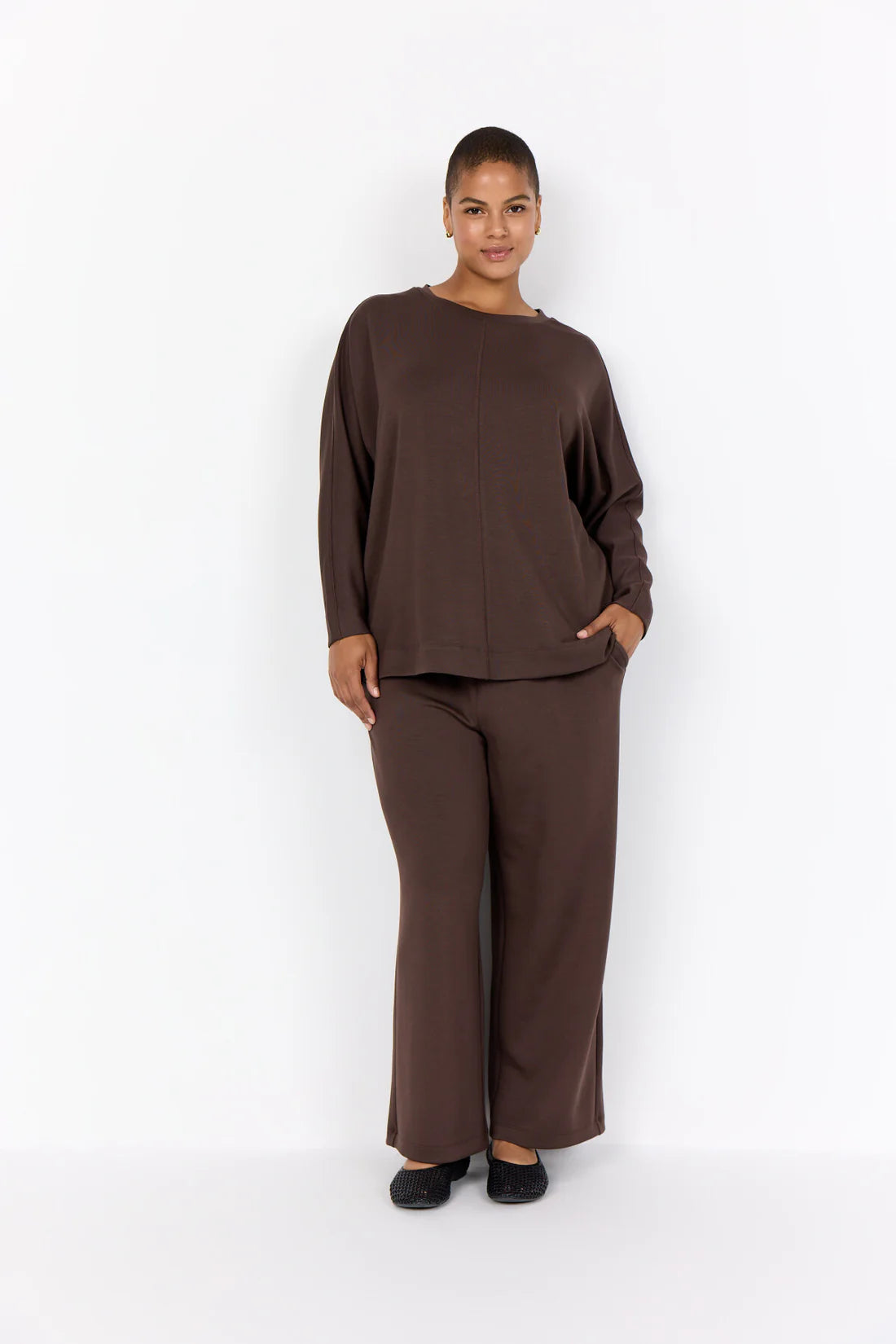 WA-SABINA 59 is a sweatshirt made of 48% Modal, 48% Polyester, and 4% Elastane. It features a round neckline, a central seam detail, and long sleeves with a relaxed fit. Pair it with jeans or casual skirts for a comfortable everyday look.